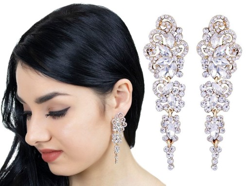 KOLCZYKI złote CYRKONIE wiszące ŚLUBNE długie - 35178 Miss Glow