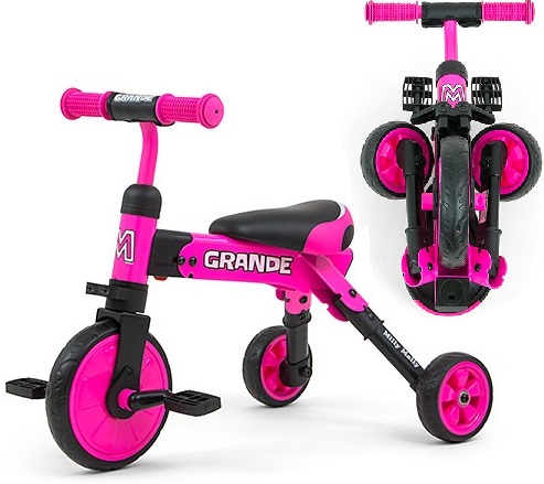 Rowerek dla dzieci 2w1 Grande RÓŻOWY (funkcja rowerka biegowego i klasycznego) - firma Milly Mally