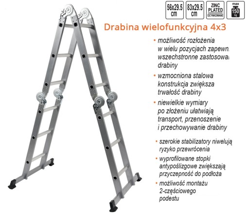 UNIWERSALNA, WIELOFUNKCYJNA DRABINA, NIEZASTĄPIONA W WYPOSAŻENIU GOSPODARSTWA DOMOWEGO I FIRMY.