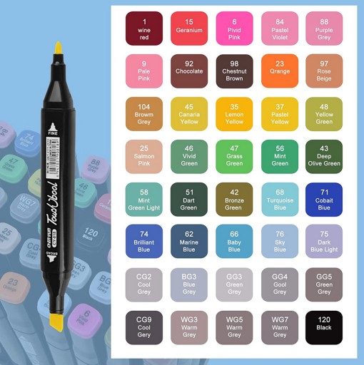 Zestaw kolorów pisaków został dobrany w taki sposób, iż znajdą one zastosowanie w różnych dziedzinach rysunku: począwszy od projektowania ubioru, poprzez product design, po rysunek architektoniczny, krajobrazy czy mangę. Spróbuj i wyraź swoją kreatywność!