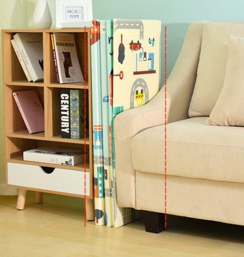 Całość maty składa się w formie walizki z pokrowcem dołączonym do zestawu możemy matę wygodnie przechowywać lub transportować. Na co dzień wystarczy złożyć ją w harmonijkę i wsunąć obok mebli by zrobić porządek! To takie proste i wygodne.