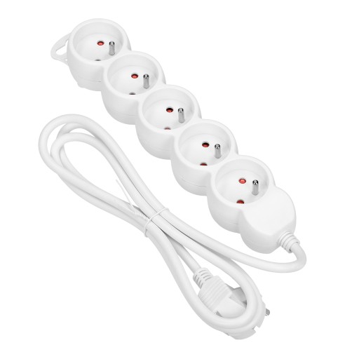 Przedłużacz 5-krotny 2P+Z, 3m H05VV-F 3x1.0mm², Imax=10A, biały