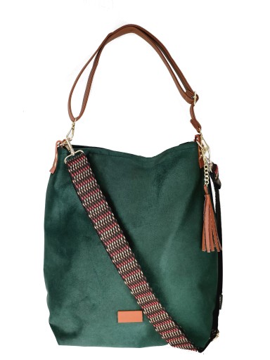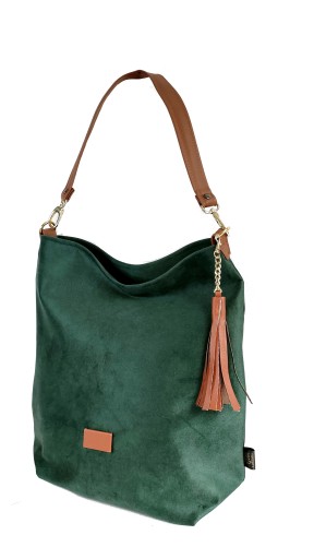 - zielony z brązowymi elementami skóry ekologicznej (okucie złote)