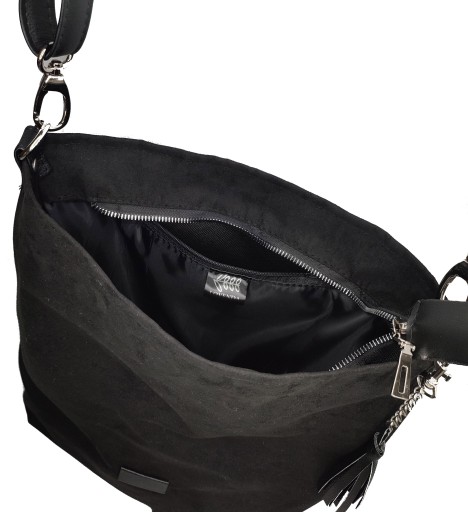 Torba zapinana jest na zamek błyskawiczny. Wnętrze wykończone miłą w dotyku podszewką , a w niej jedna zamykana na zamek kieszonka na telefon i drobiazgi. Torba posiada solidne uchwyty, umożliwiające swobodne noszenie torby na ramieniu.