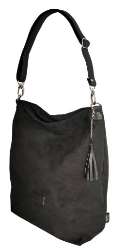 - czarny z czarnymi elementami skóry ekologicznej (okucie srebrne)