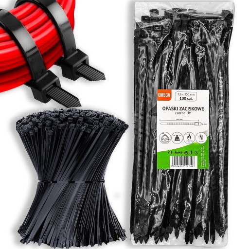 OPASKI TRYTKI ZACISKOWE KABLOWE UV CZARNE 7,6X300