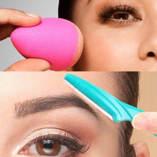 Prezentowany przed Państwem zestaw to gąbeczka do makijażu plus nożyk/trymer do brwi. Gąbka do makijażu to innowacyjny przyrząd do dokładnego nakładania makijażu. Umożliwia stworzenie nieskazitelnego makijażu bez smug, przy minimalnej stracie produktu. Nożyk zapewnia wygodne usunięcie niechcianych włosów z okolic brwi. Jego ostrza są na tyle delikatne, że nie zacinają skóry.