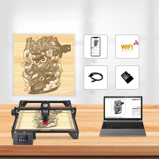 Ray5 10w z 3.5" ekranem dotykowym dodaje nowe funkcje, takie jak wiele sposobów na przesyłanie danych i kontrolę wielu maszyn. W porównaniu do innych grawerek laserowych, może grawerować do 1000+ materiałów.