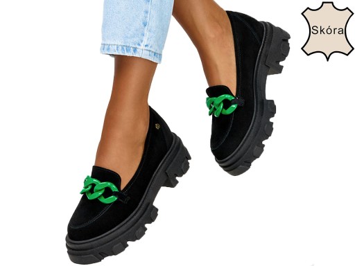 MODNE MOKASYNY NA PLATFORMIE ŁAŃCUCH SKÓRA NEW 37