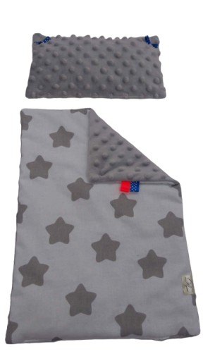 Zestaw jest dwustronny, zarówno kołderka jak i poduszka wypełnione są antyalergiczną, puszystą włókniną.