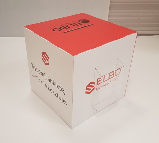 Tekturowy sześcian hanger urna o boku 40cm, kostka z dowolnym nadrukiem reklamowym