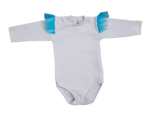 Białe bodziaki na długi rękaw z pięknym tiulowym wykończeniem ramionek, wygodne do ubrania - rozmiar 56