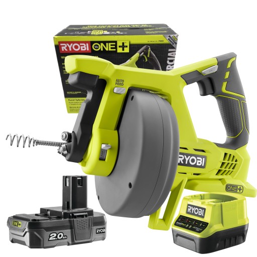 - Do zasilania przepychacza potrzebny jest akumulator litowo-jonowy 18V ONE+ Ryobi