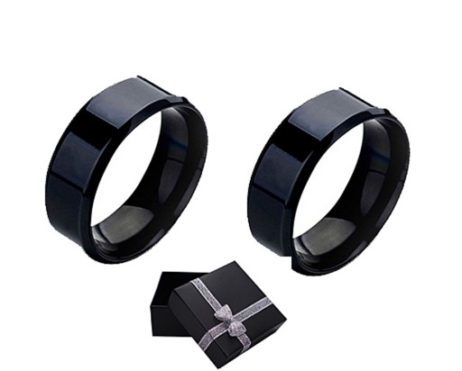 STALOWA CZARNA OBRĄCZKA SYGNET PIERŚCIONEK 2 SZT PARA C879