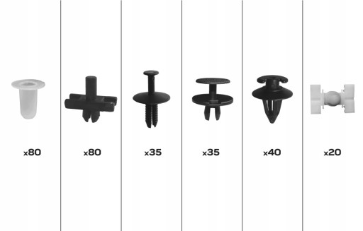 Zestaw 290 szt spinek samochodowych pasujący do aut marki BMW.