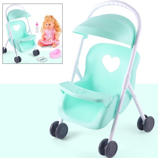 Łatwy Składany Wózek Dla Lalek Dla Niemowląt Plastikowy Mini Wózek Zabawkowy Grass Green