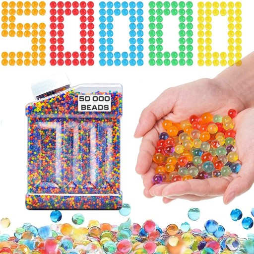 - Gigantyczny zestaw 50000 sztuk (odpowiednik 125l wody) w wygodnym, zakręcanym pudełku - już nigdy Ci nie zabraknie kuleczek hydrożelowych!