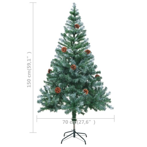 Sztuczna oszroniona choinka z LED, bombkami i szyszkami, 150 cm