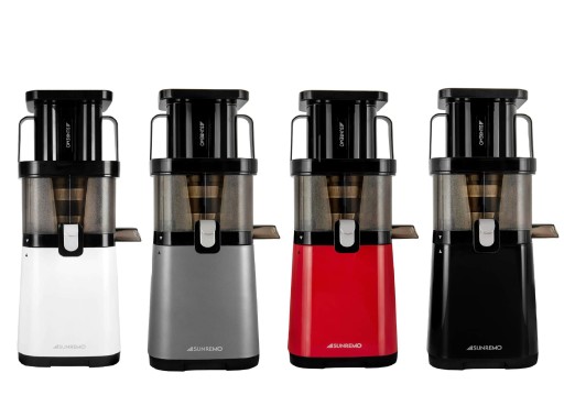 Wyciskarka Sunremo Primo dostępna jest w czterech perłowych kolorach: biały, srebrny, czerwony, czarny.