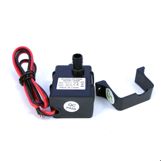Pompka do cieczy o wydajności 240l/h, może pompować wodę do wysokości 3m. Wyróżnia się małymi rozmiarami, a bezszczotkowy silnik zapewnia cichą i bezawaryjną pracę. Jest zasilana napięciem 12V. Do zestawu dołączony uchwyt z otworami do przykręcenia.