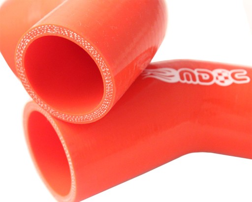 Łączniki MDC zbrojone 4-ro krotnym oplotem, o grubości ścianki 6,1mm. Testowane do 8 barów oraz w zakresie temperatur od -60 do +260 stopni C. Jednolity odlew najwyższej jakości silikonu zapobiega rozwarstwianiu się poszczególnych warstw ścianki kolanka.