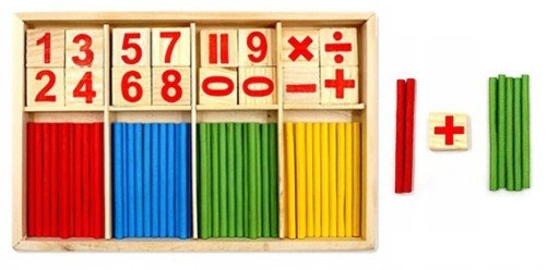 - drewniane tabliczki z cyferkami oraz prostymi działaniami matematycznymi