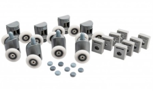 - Uniwersalność – rolki zostały wykonane z tworzywa sztucznego, nylonu oraz stali odpornej na korozję. Pasują do wszystkich kabin prysznicowych w których zastosowano tego typu łożyska kulkowe. Rolki wraz z kółkami dopasowują się do kształtu prowadnicy.