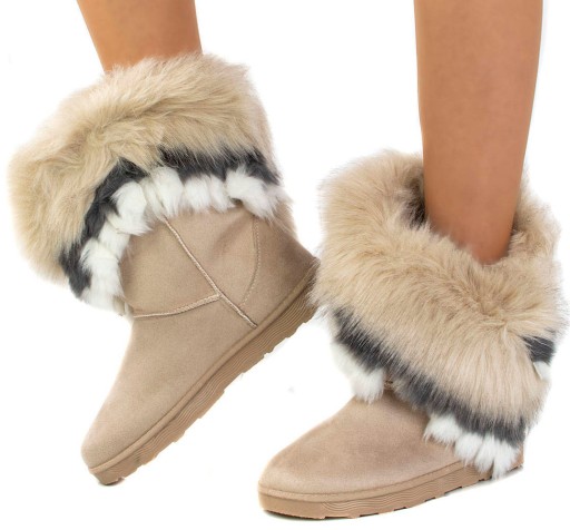 BEŻOWE CIEPŁE ŚNIEGOWCE Z FUTERKIEM BOTKI 39