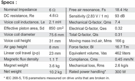 - Moc ciągła (W RMS): 300 W