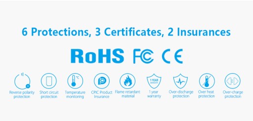 - zabezpieczenia: termiczne, zwarciowe, przed odwrotnym włożeniem akumulatora