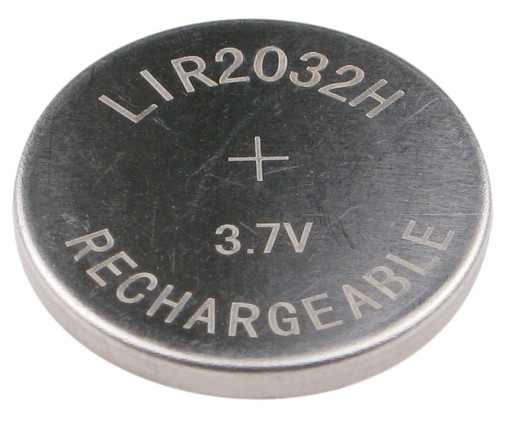 Akumulator LIR2032H. Wymiary: średnica 20mm, grubość 3,2mm. Napięcie: 3,7V, pojemność 55-60mAh.