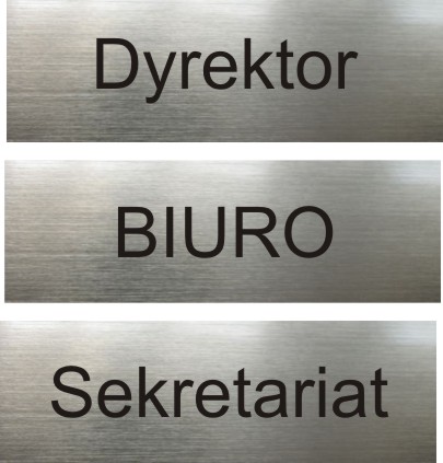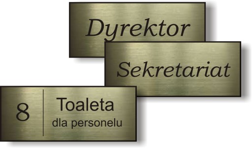 Tabliczki wykonujemy na laminacie w kolorze srebrnym lub złotym i podklejamy taśmą dwustronną w celu łatwiejszego montażu.