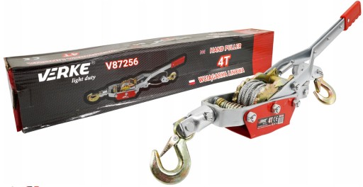 Wyciągarka (wciągarka, przeciągarka, naciągarka) linowa z napędem ręcznym służy do transportowania ładunków w płaszczyźnie poziomej. Została wykonana ze stalowej liny oraz dźwigni napędzającej bęben z mechanizmem zapadkowym . Wyciągarka została wykonana z wysokiej jakości materiałów o odpowiedniej trwałości - stal konstrukcyjna, odlewane haki ze sprężynami zwrotnymi.