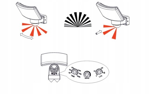 - Regulacja zasięgu wykrywania ruchu SENS, odległość detekcji przy niskiej czułości może wynosić tylko 5 m, a przy wysokiej czułości 10 m, co ułatwia pracę w dużych pomieszczeniach.