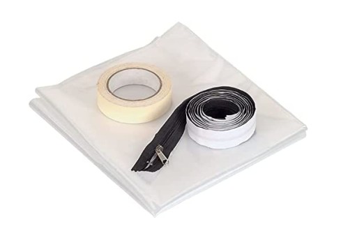 Drzwi kurtyna foliowa przeciwpyłowa z zamkiem błyskawicznym.