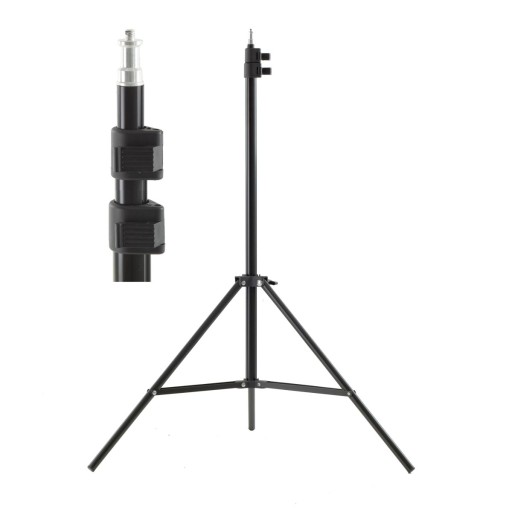 Szybkie zaciski z tworzywa sztucznego umożliwiają łatwe zapinanie statywu na dowolnej wysokości jednym ruchem ręki. Waga: 0,5 kg, udźwig do 3 kg. Wymiary po złożeniu zostały zredukowane przez zastosowanie teleskopowego mechanizmu składania, tym samym nie ograniczając szerokiego zakresu pracy (waha się od 74 do 205 cm, regulowany jest płynnie na dowolnej wysokość). Rozstaw nóg (od stopki do stopki) 75cm.