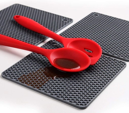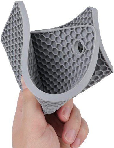 Podkładka silikonowa pod naczynie w łatwy sposób zabezpieczy blaty w Twojej kuchni przed działaniem bardzo wysokiej temperatury. To przydatny i niezbędny dodatek w każdym domu. Dzięki strukturze "plastra miodu" jest cienka i lekka a równocześnie na tyle gruba, że doskonale izoluje gorący garnek od blatu stołu.