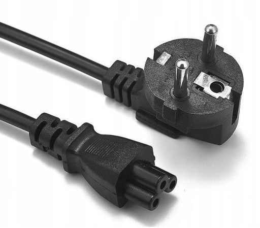 Kabel zasilający wtyk C5 - standardowy wtyk "koniczynka". Kable są używane, kolor czarny, miks długości.