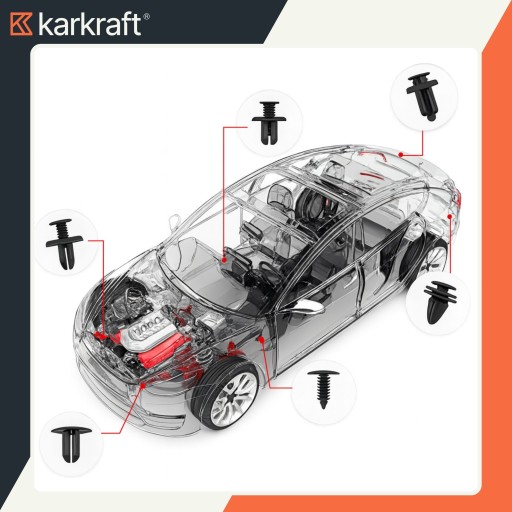Kompletny zestaw najczęściej używanych klipsów, który rozwiązuje jeden z najbardziej irytujących problemów w aucie – brak tej jednej spinki dokładnie wtedy, gdy jej potrzebujesz.