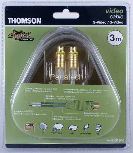 Przewód 1x S-VIDEO - 1x S-VIDEO o długości 3 m. Wysokiej jakości przewód do analogowych połączeń video (obraz, wizja), pozwalający podłączyć wszelkiego rodzaju komponenty A/V jak np. odtwarzacze i nagrywarki DVD, magnetowidy VCR, dekodery satelitarne, kamery, wzmacniacze / amplitunery kina domowego i telewizory. Kabel wykonany jest z wysokiej jakości miedzi beztlenowej (OFC), podwójnie ekranowany, posiada izolację, która chroni sygnał przed wszelkiego rodzaju zakłóceniami. Wtyki są pozłacane, wtyczki zalewane.