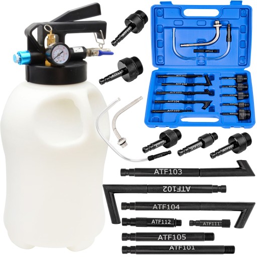 Zbiornik ciśnieniowy służy do opróżniania i napełniania olejem automatycznych skrzyń biegów i mechanizmów różnicowych.