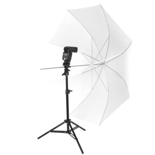 Uchwyt pozwala zamocować lampę reporterską wraz z parasolką fotograficzną. Wyposażony w przegub pozwala na odchylenie lampy w zakresie -90°/+90°.