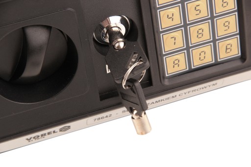 Sejf z zamkiem cyfrowym marki Vorel wykonany z grubej stalowej blachy z możliwością montażu do ściany lub podłogi.