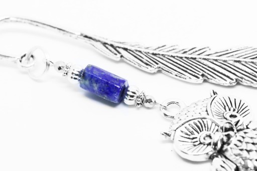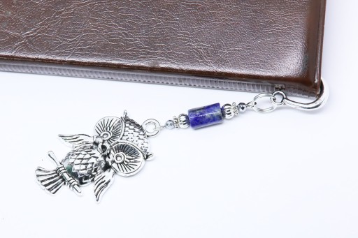 Elegancka zakładka do książki z zawieszką w kształcie sowy z dodatkiem lapisu lazuri i hematytu.