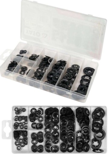 - rozmiary: M3 (30 szt.), M4 (30 szt.), M5 (40 szt.), M6 (50 szt.), M8 (50 szt.), M10 (40 szt.), M12 (20 szt.);