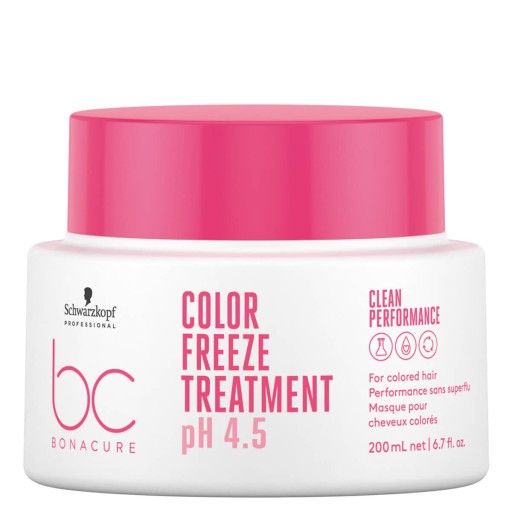 COLOR FREEZE pH 4.5 to gama przeznaczona do włosów farbowanych. Przywraca równowagę struktury włosa do optymalnego pH 4,5, zapewniając ochronę koloru włosów i niemal zerowe jego blaknięcie.