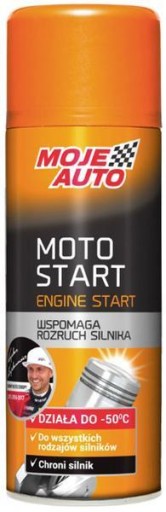 Samostart silnika Moje Auto Moto Start to eterowy środek przeznaczony do awaryjnego rozruchu silnika we wszystkich rodzajach silników. Można go stosować zarówno do silników samochodowych, jak też w innych pojazdach, maszynach i urządzeniach. Doskonale sprawdzi się w silnikach benzynowych, Diesla, motocyklach, kosiarkach, piłach itp. Szybki i bezpieczny sposób na rozruch silnika, szczególnie przy niskich temperaturach powietrza na zewnątrz. Wykazuje skuteczność w temperaturze do -50°C.