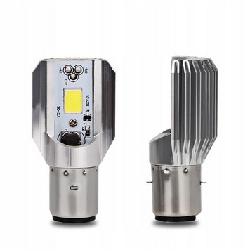 Żarówka BA20D ze światłami mijania i drogowymi dzięki rozmieszczeniu ledów jak w tradycyjnej żarówce. Świeci dwa razy mocniej od tradycyjnej, co daje światło zbliżone do reflektorów ksenonowych.