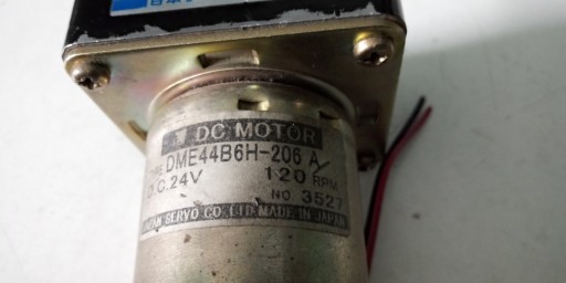 Motoreduktor Noritsu Japan Servo z przekładnią 6H30-H167 oraz silnikiem DME44B6H-206A , zasilany napięciem 24V DC, obroty na wyjściu 120rpm, wymiary osi Fi6x20mm. Motoreduktor przetestowany, w pełni sprawny.