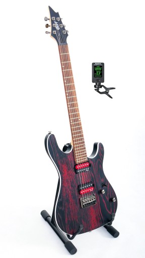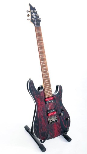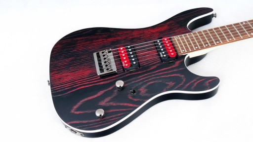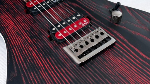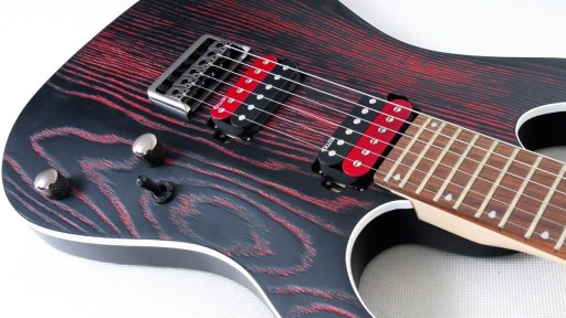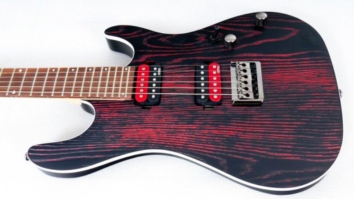 Zestawiony z mahoniowym korpusem top z piaskowanego jesionu bagiennego został wykończony na czarno, a wyżłobienia słojów pomalowano na czerwony lub złoty kolor, co dodaje instrumentom bardzo interesującej prezencji. Przykręcany gryf z kanadyjskiego klonu cukrowego wieńczy podstrunnica z Pau Ferro o promieniu 15,75" (400 mm). Menzura wynosi 25,5"(648 mm).